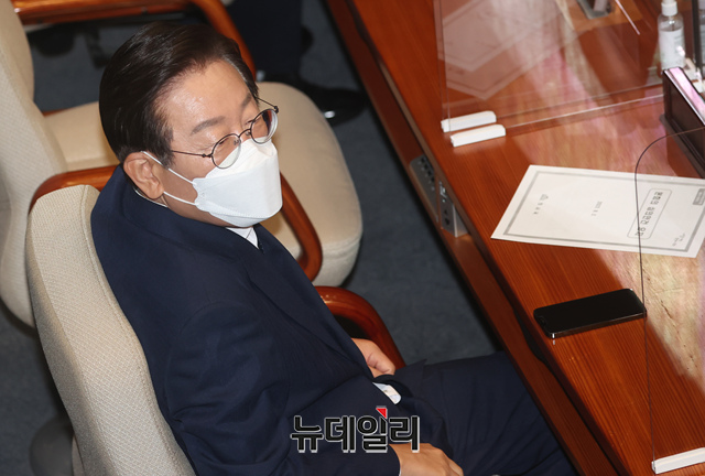 이재명 더불어민주당 의원이 2일 오후 국회에서 열린 본회의에 자리해 있다. (공동취재사진)