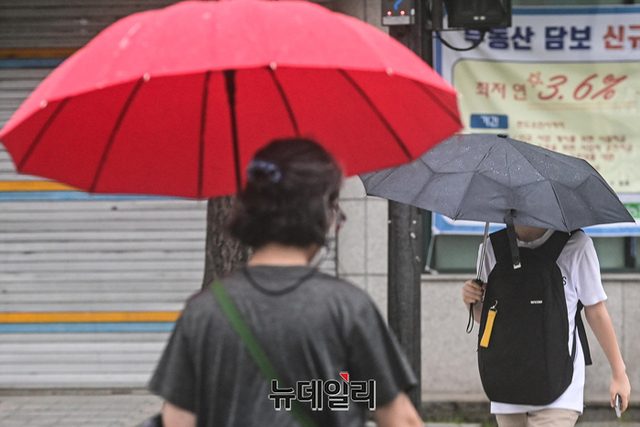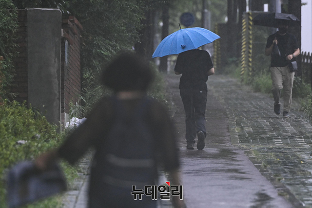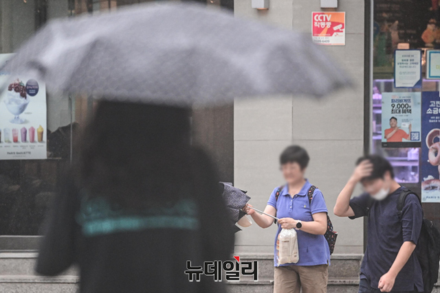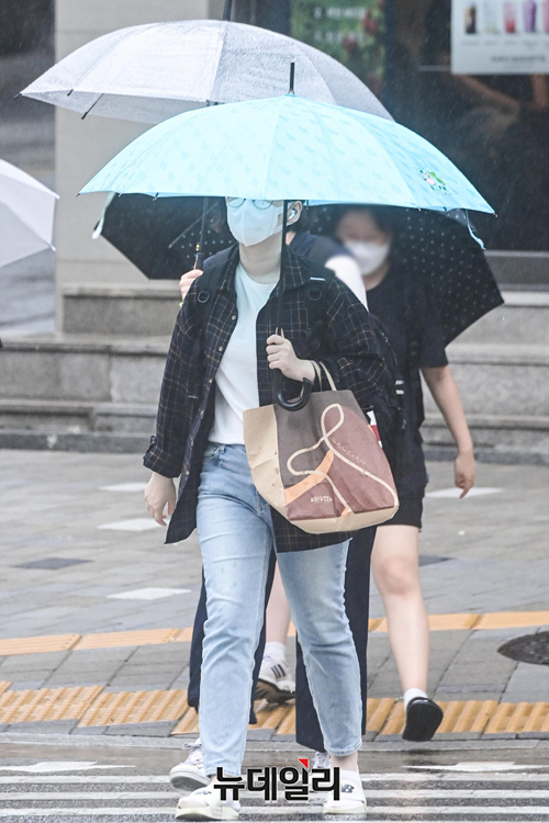 태풍 영향으로 전국 곳곳에 비가 내리고 있는 2일 오후 서울도심에서 시민이 우산을 쓰고 이동하고 있다. 기상청은 "피해가 발생하지 않도록 각별히 유의하기 바란다"며 "3일도 전국이 대체로 비가 내리고 오후부터 구름이 많아지겠다"고 말했다.