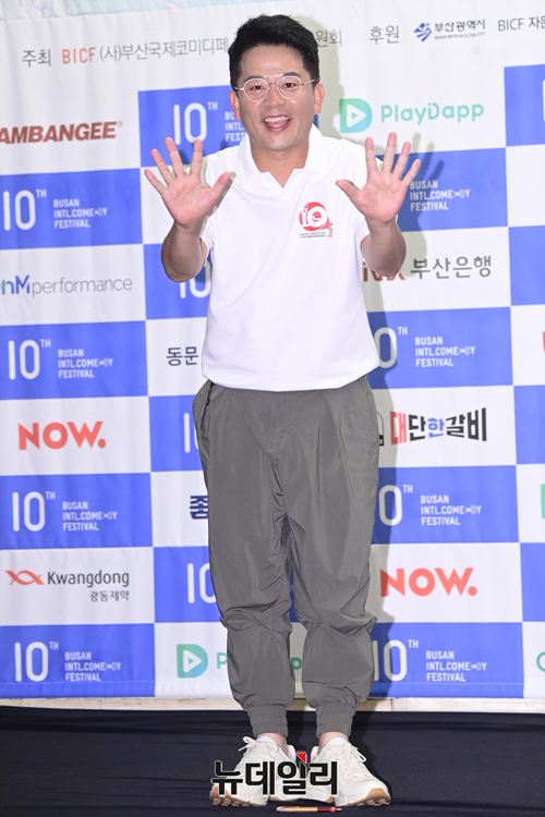 조직위원회 집행위원장을 맡은 개그맨 김준호가 3일 오전 서울 마포구 스탠포드호텔코리아에서 열린 제10회 부산국제코미디페스티벌(BICF) 기자회견에서 포즈를 취하고 있다.올해로 10주년을 맞은 '부코페'는 3년 만에 오프라인으로 열려 시민 모두가 참여 가능한 지역밀착형 축제다.이번 페스티벌은 '부산바다, 웃음바다' 주제로 전 세계에 K-코미디를 알리는 목표를 세웠다. 19일부터 28일까지 열흘간 △부산 KNN 시어터 △영화의전당 △신세계백화점 문화홀 등에서 열린다.