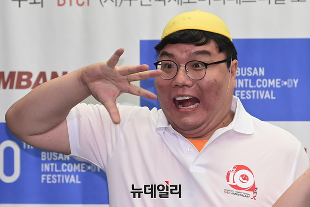 공연팀 급식왕(남하리, 이은호, 류용현, 홍나영, 김범준, 이상수, 남태령)이 3일 오전 서울 마포구 스탠포드호텔에서 열린 제10회 부산국제코미디페스티벌(BICF) 기자회견에서 포즈를 취하고 있다.올해로 10주년을 맞은 '부코페'는 3년 만에 오프라인으로 열려 시민 모두가 참여 가능한 지역밀착형 축제다.이번 페스티벌은 '부산바다, 웃음바다' 주제로 전 세계에 K-코미디를 알리는 목표를 세웠다. 19일부터 28일까지 열흘간 △부산 KNN 시어터 △영화의전당 △신세계백화점 문화홀 등에서 열린다.