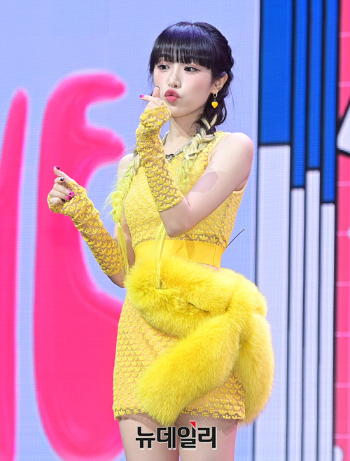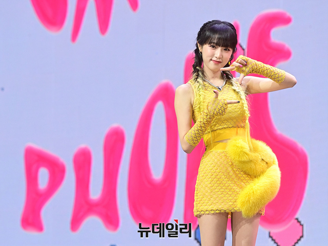 가수 최예나(YENA)가 3일 오후 서울 광진구 예스24 라이브홀에서 두 번째 미니앨범 '스마트폰' 쇼케이스에서 포토타임을 갖고 있다.