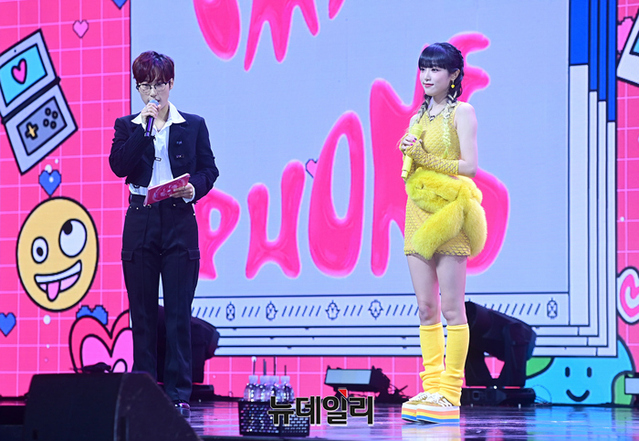 방송인 재재가 3일 오후 서울 광진구 예스24 라이브홀에서 열린 가수 최예나(YENA) 두 번째 미니앨범 '스마트폰' 쇼케이스에서 인사말을 하고 있다.
