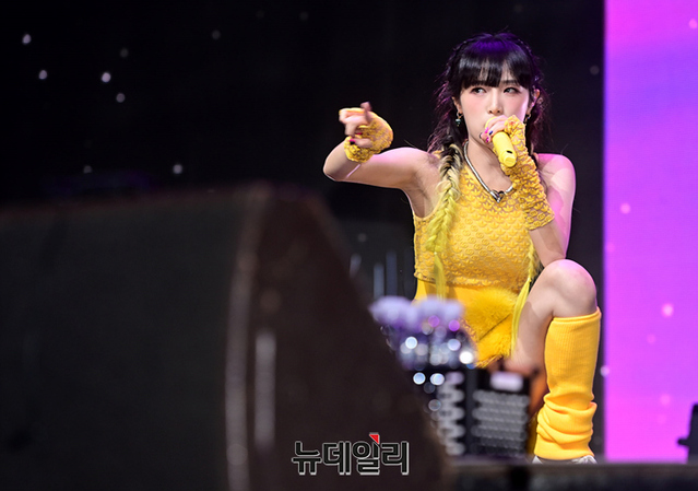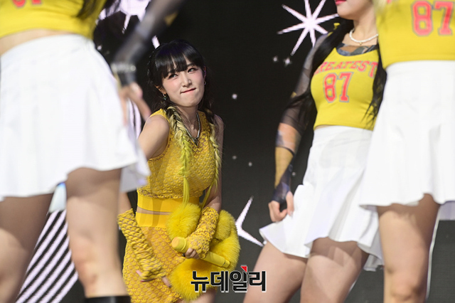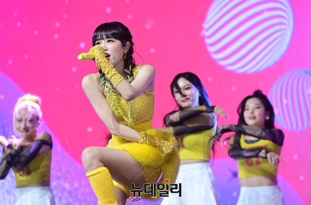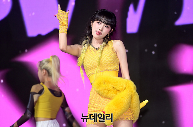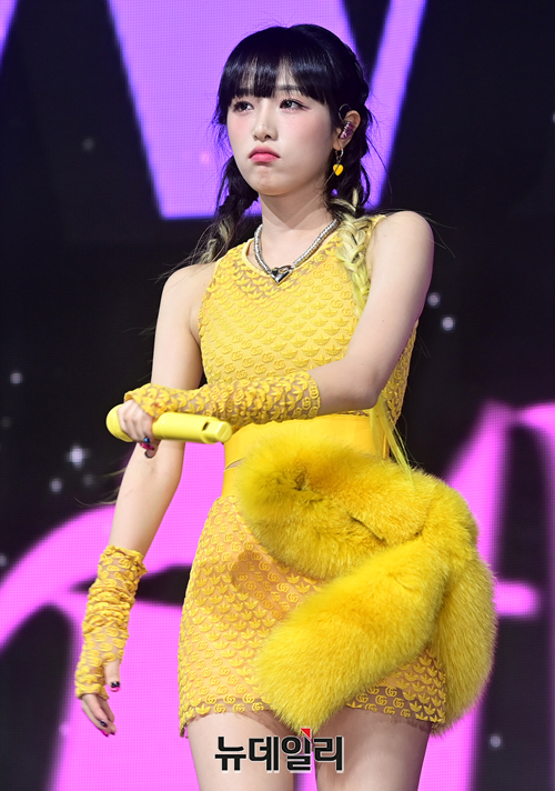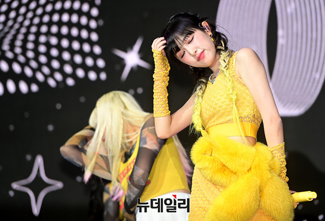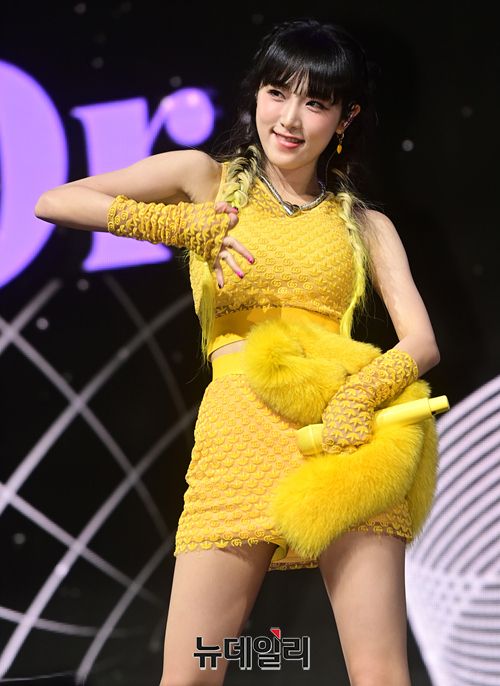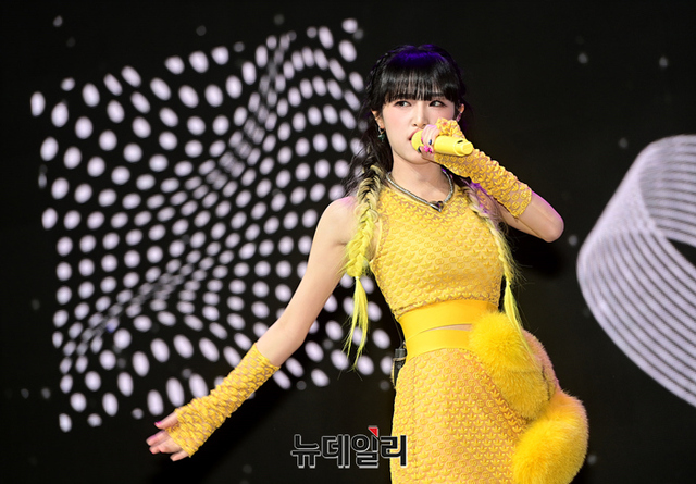 가수 최예나(YENA)가 3일 오후 서울 광진구 예스24 라이브홀에서 두 번째 미니앨범 '스마트폰' 쇼케이스에서 수록곡 무대를 선보이고 있다.