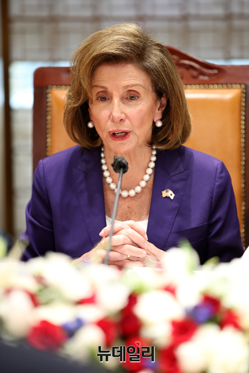 낸시 펠로시 미국 연방하원의장이 4일 오전 국회에서 김진표 국회의장과 만나 회담을 갖고 있다. (공동취재사진)