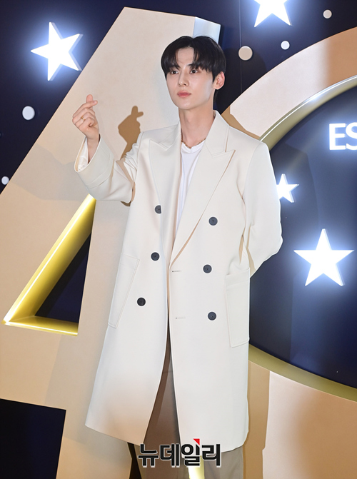 가수 황민현이 4일 오후 서울 송파구 롯데월드몰 아트리움광장에서 열린 에스티 로더 갈색병 40주년 팝업스토어 오픈행사에 참석해 포토타임을 갖고 있다.