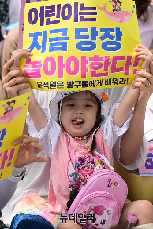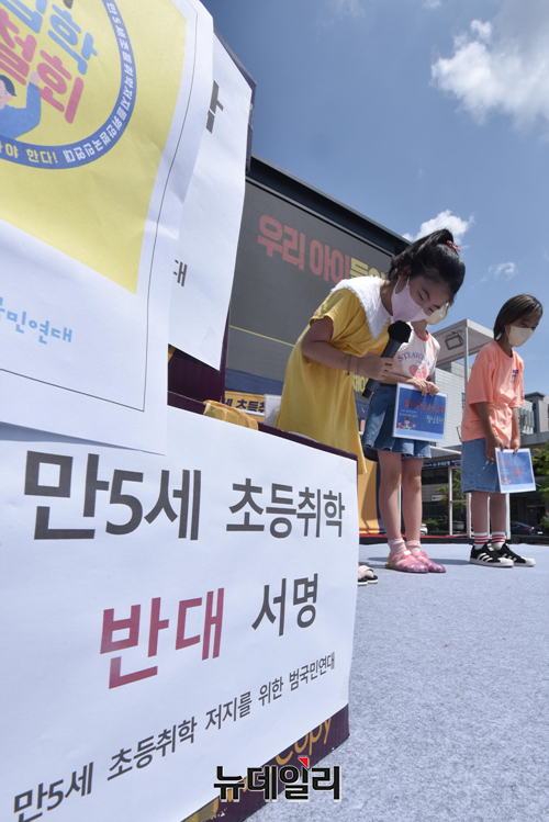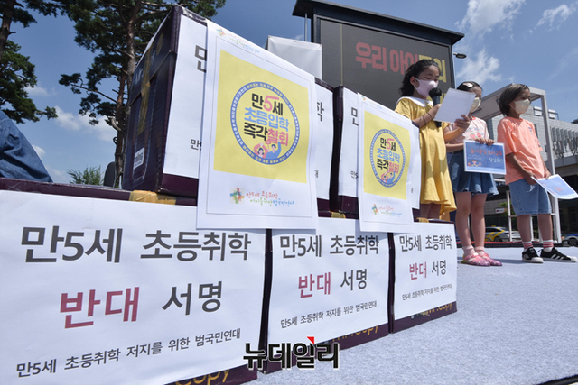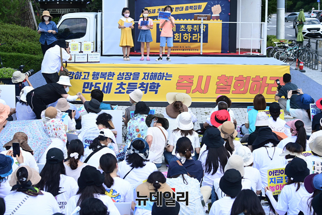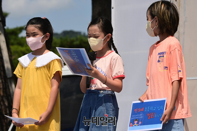 [포토] '만5세 초등 취학 철회' 촉구 집회 참석한 어린이들