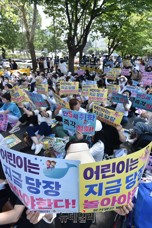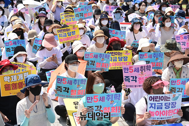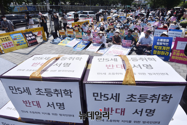 범국민연대는 "대통령과 면담을 하고 싶다"며 "영유아의 발달과 어린이의 놀권리를 침해하는 만5세 조기 입학 정책을 즉각 취소하라"고 밝혔다.