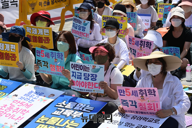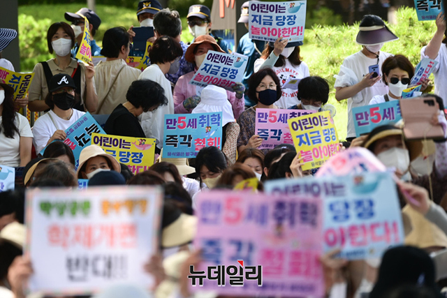 [포토] '취학 학제 개편안' 반대하는 학부모들 "대통령 면담을 요구한다"