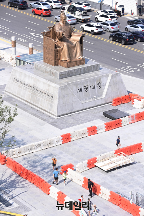 광화문광장 재개장을 하루 앞두고 있는 5일 오후 서울 광화문광장에서 작업자들이 막바지 작업을 하고 있다.서울시는 "새롭게 바뀐 광장은 1년 9개월 만에 공사를 진행했다"며 "양방향 총 3개 차로를 없애고 총면적 4만 300㎡로 기존 1만 8,840㎡보다 약 2배 정도 넓어졌다"고 말했다.이어 "시민 누구나 자연과 녹음이 있는 편안한 쉼터에서 일상의 멋과 여유를 즐길 수 있도록 다양한 휴식공간을 마련했다"고 밝혔다.개장 기념행사가 진행되는 6일 오후 6시부터 밤 10시까지 세종대로가 전면 통제된다. (영상=서울시)