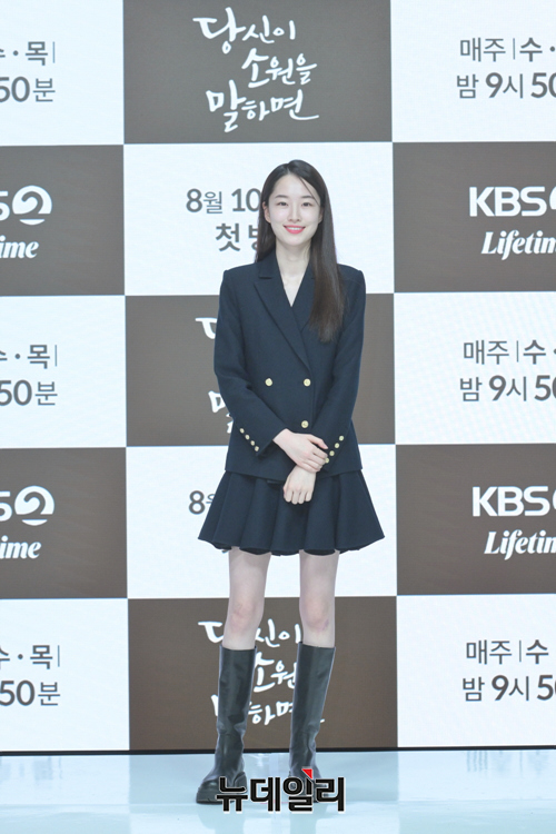 배우 원지안이 10일 오후 서울 여의도 페어몬트앰배서더호텔에서 열린 KBS2 새 수목드라마 '당신이 소원을 말하면(감독 김용완)' 제작발표회에서 포즈를 취하고 있다.