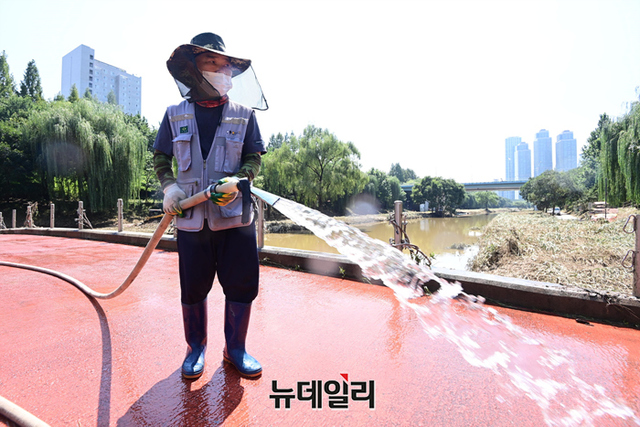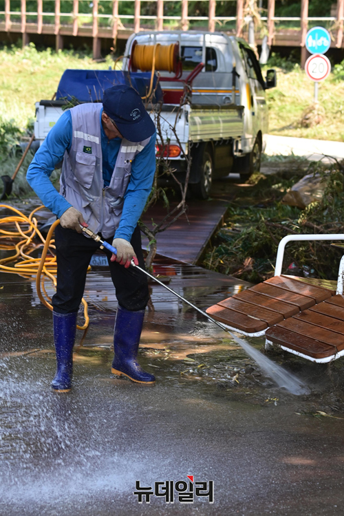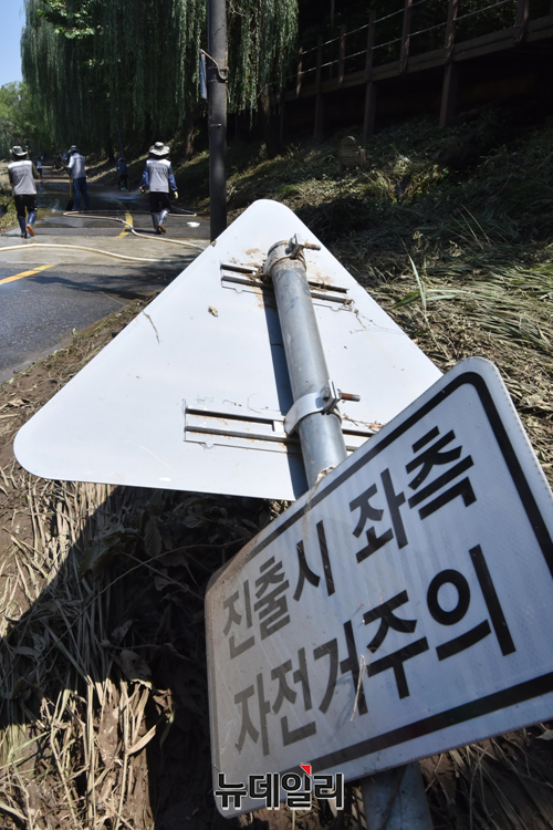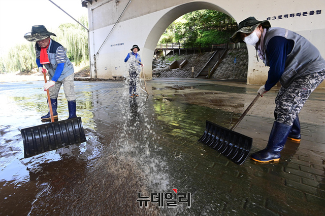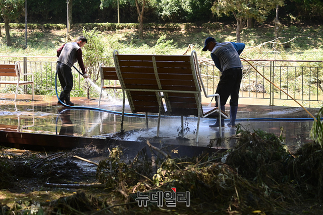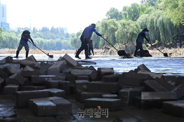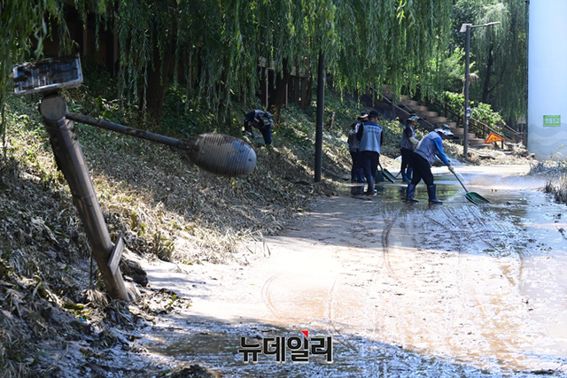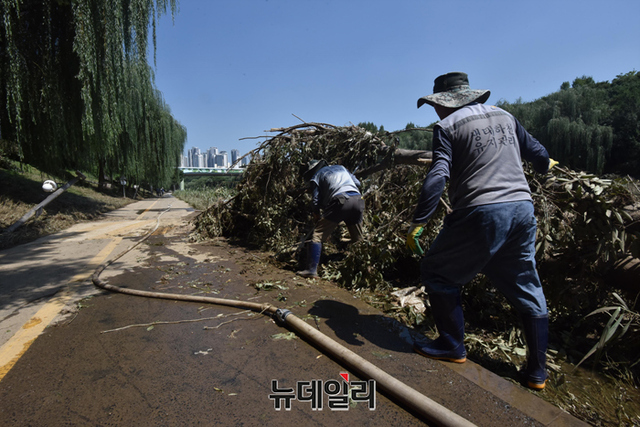 [포토] 집중호우 끝나자 부유물 제거 나선 강남구