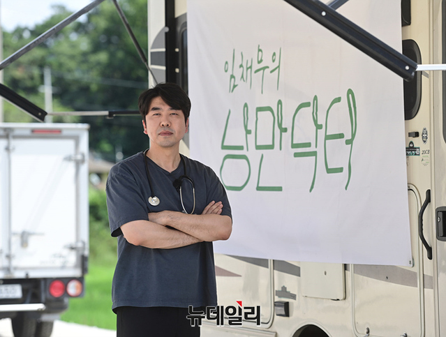 이태훈 전문의가 12일 경북 예천군에서 공개된 ENA 힐링예능 '임채무 낭만닥터' 촬영 현장 공개행사에서 닥터캠핑카 앞에서 포즈를 취하고 있다.'임채무의 낭만닥터'는 병원이 멀어 치료를 미루는 산간벽지의 어르신들을 위해 정형외과 전문의 이태훈 원장과 의료진들이 의료시설을 갖춘 닥터캠핑카로 마을을 찾아 진료를 펼치는 프로그램이다.이들은 이날 약 4개월간 쉼 없이 달려온 촬영 현장을 첫 공개했다. 낭만닥터 이사장인 임채무와 사무장 이문식, 실장 오승아가 경북 예천군 풍정리에서 몸이 아픈 어르신을 찾았다. 매주 일요일 오전 7시에 방송된다.