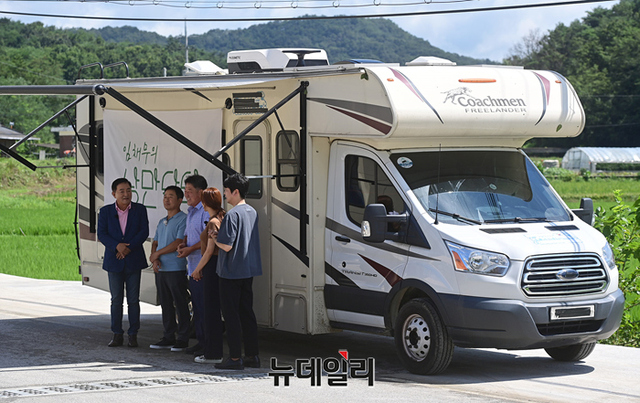 배우 이문식이 12일 경북 예천군에서 공개된 ENA 힐링예능 '임채무 낭만닥터' 촬영 현장 공개행사에서 오프닝을 하고 있다.'임채무의 낭만닥터'는 병원이 멀어 치료를 미루는 산간벽지의 어르신들을 위해 정형외과 전문의 이태훈 원장과 의료진들이 의료시설을 갖춘 닥터캠핑카로 마을을 찾아 진료를 펼치는 프로그램이다.이들은 이날 약 4개월간 쉼 없이 달려온 촬영 현장을 첫 공개했다. 낭만닥터 이사장인 임채무와 사무장 이문식, 실장 오승아가 경북 예천군 풍정리에서 몸이 아픈 어르신을 찾았다. 매주 일요일 오전 7시에 방송된다.