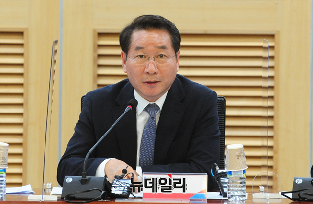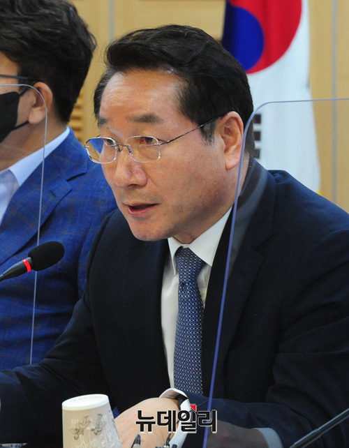 유정복 인천광역시장이 17일 오후 국회 의원회관에서 열린 인천·경기 예산정책협의회에서 발언을 하고 있다.