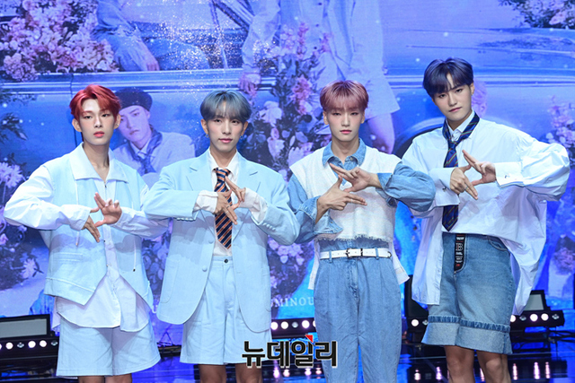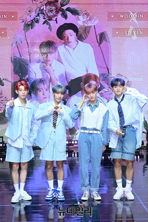 아이돌그룹 루미너스(스티븐, 수일, 영빈, 우빈)가 17일 오후 서울 강남구 일지아트홀에서 열린 첫 정규앨범 '루미너스 인 원더랜드' 발매기념 쇼케이스에서 포즈를 취하고 있다.'루미너스 인 원더랜드'은 데뷔 앨범 '유스'와 두 번째 미니앨범 '빛과 어둠 사이'를 잇는 루미너스 시리즈 3부작의 완결판이다.타이틀곡 '엔진'을 포함해 '마리오네트' '크리쳐' '유어 오션' '열대야' '파' '홀로그램' '업사이드 다운' '토킹 마이셀프' '레전드' 등 총 10곡이 수록됐다. 음원은 오후 6시 공개.