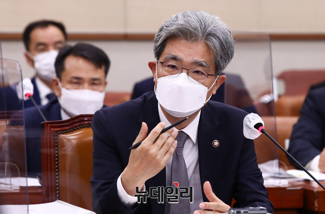 김상환 법원행정처장이 18일 국회에서 열린 법제사법위원회 전체회의에서 위원들의 질의에 답하고 있다. (공동취재사진)