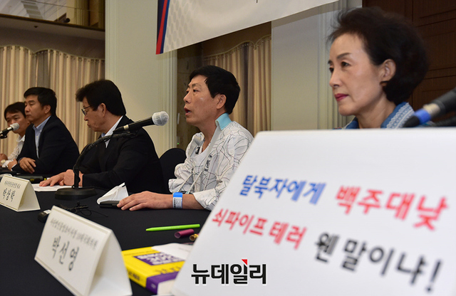 박선영 물망초 이사장이 19일 오전 서울 중구 한국프레스센터에서 열린 북한인권단체에 대한 살인테러 규탄 기자회견에서 발언하고 있다.북한인권단체는 성명을 통해 "북한 김여정은 방역총화 연설에서 북한에 퍼진 코로나에 대한 책임을 남한에서 보낸 전단지를 언급하며 박상학 대표를 지목했다"며 이번 박 대표에 대한 테러에 대해 철저한 수사를 촉구했다.이어 "이번 테러에 절대로 굴복하지 않고, 김씨 왕조의 해체를 위해 더 강력히 투쟁하겠다"고 말했다.앞서 박상학 자유북한운동연합 대표는 8월 15일 광화문광장에서 열린 주사파척결 범국민대회에 참석했다가 한 괴한에게 쇠파이프로 공격을 당했다.이날 기자회견엔 허광일 북한인권단체 총연합대표, 강철환 북한전략센터 대표, 박상학 자유북한운동연합 대표, 박선영 물망초 이사장, 김석우 전 통일원 차관, 최정훈 남북통일당 대표와 탈북민들이 참석했다.