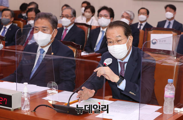 권영세 통일부 장관이 19일 국회에서 열린 외교통일위원회 전체회의에서 의원들의 질의에 답하고 있다. (공동취재사진)