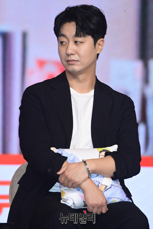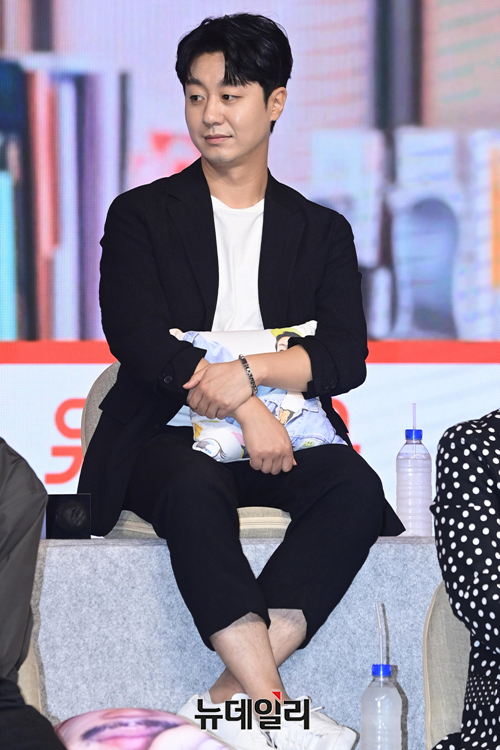 배우 배유람이 22일 오전 서울 여의도 콘래드 서울 호텔에서 열린 쿠팡플레이 시트콤 '유니콘(연출 김혜영)' 제작발표회에서 취재진의 질문을 듣고 있다.
