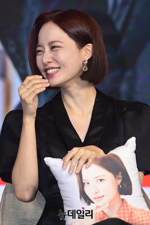 배우 배윤경이 22일 오전 서울 여의도 콘래드 서울 호텔에서 열린 쿠팡플레이 시트콤 '유니콘(연출 김혜영)' 제작발표회에서 미소를 짓고 있다.