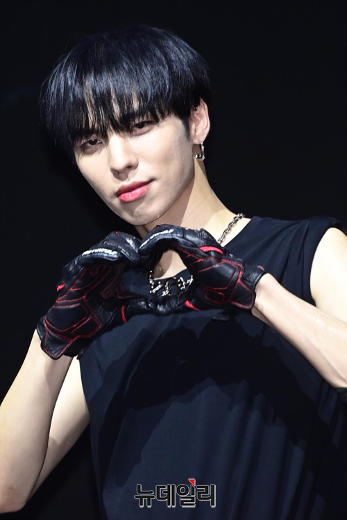 아이돌그룹 씨아이엑스 멤버 BX가 22일 오후 서울 서대문구 연세대학교 백주년콘서트홀에서 열린 다섯 번째 미니앨범 '오케이 에피소드 1:오케이 낫' 발매기념 쇼케이스에서 포즈를 취하고 있다.