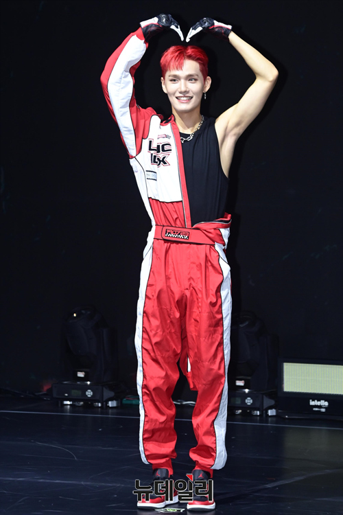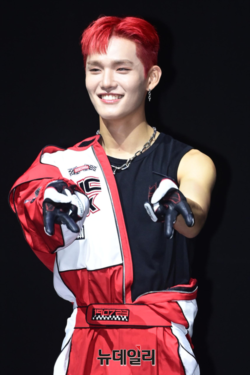 아이돌그룹 씨아이엑스 멤버 승훈이 22일 오후 서울 서대문구 연세대학교 백주년콘서트홀에서 열린 다섯 번째 미니앨범 '오케이 에피소드 1:오케이 낫' 발매기념 쇼케이스에서 포즈를 취하고 있다.