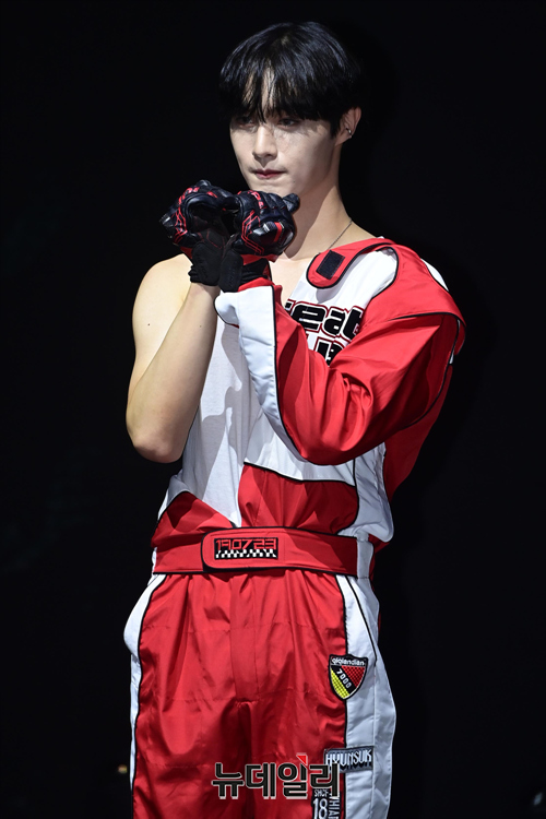 아이돌그룹 씨아이엑스 멤버 현석이 22일 오후 서울 서대문구 연세대학교 백주년콘서트홀에서 열린 다섯 번째 미니앨범 '오케이 에피소드 1:오케이 낫' 발매기념 쇼케이스에서 포즈를 취하고 있다.