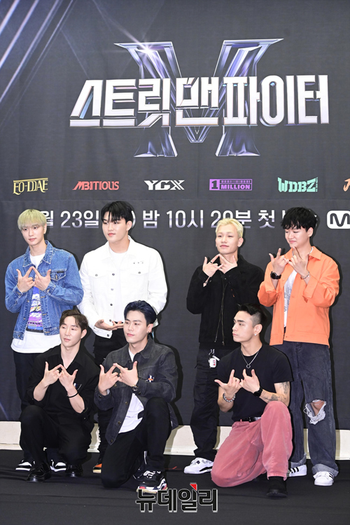 크루 저스트절크가 23일 오후 서울 마포구 스탠포드호텔코리아에서 열린 엠넷 새 예능 '스트릿 맨 파이터(연출 최정남)' 제작발표회에서 포즈를 취하고 있다.