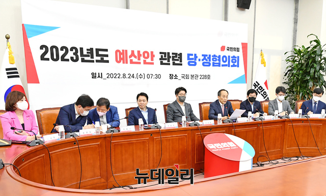 추경호 경제부총리 겸 기획재정부 장관이 24일 국회에서 열린 '2023년도 예산안 관련 당정협의회'에서 발언을 하고 있다.