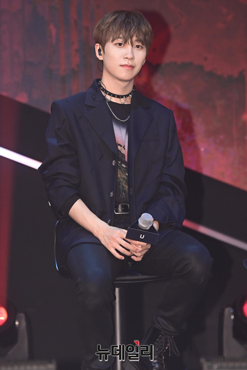 아이돌그룹 블랭키 멤버 유가 24일 오전 서울 광진구 건국대학교 새천년관 대공연장에서 열린 디지털 미니앨범 '키 투:패션 푸에고' 발매기념 쇼케이스에서 취재진의 질문을 듣고 있다.
