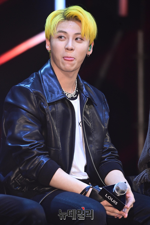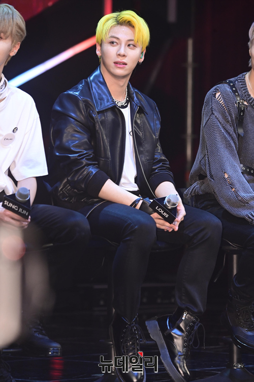 아이돌그룹 블랭키 멤버 루이가 24일 오전 서울 광진구 건국대학교 새천년관 대공연장에서 열린 디지털 미니앨범 '키 투:패션 푸에고' 발매기념 쇼케이스에서 취재진의 질문을 듣고 미소를 짓고 있다.