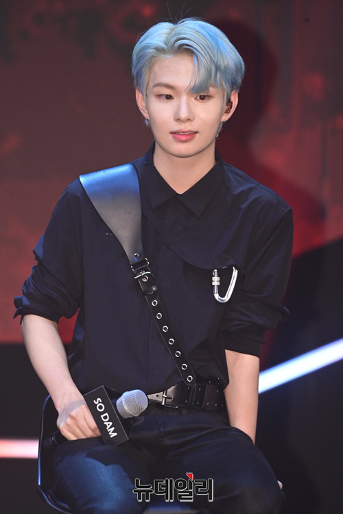 아이돌그룹 블랭키 멤버 소담이 24일 오전 서울 광진구 건국대학교 새천년관 대공연장에서 열린 디지털 미니앨범 '키 투:패션 푸에고' 발매기념 쇼케이스에서 취재진의 질문을 듣고 있다.