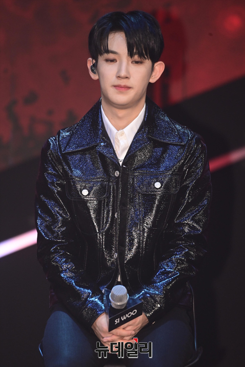 아이돌그룹 블랭키 멤버 시우가 24일 오전 서울 광진구 건국대학교 새천년관 대공연장에서 열린 디지털 미니앨범 '키 투:패션 푸에고' 발매기념 쇼케이스에서 취재진의 질문을 듣고 있다.