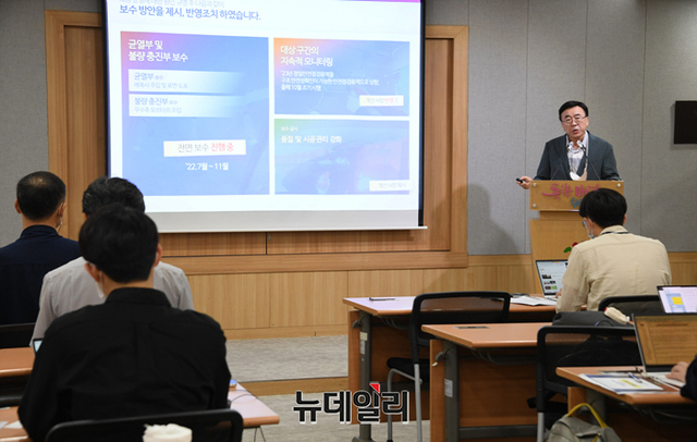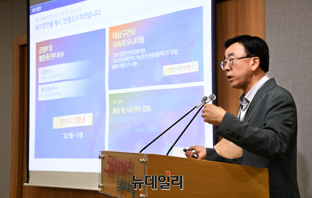 김상효 서울시 합동조사단 위원장이 24일 오전 서울 중구 서울시청에서 진행된 성산대교 안정성 검증 합동조사 결과 발표에서 발언을 하고 있다.