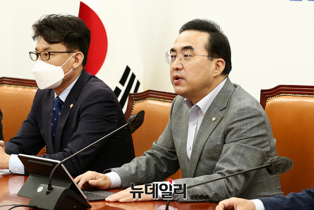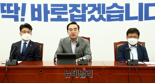 박홍근 더불어민주당 원내대표가 25일 오전 국회에서 열린 정책조정회의에서 모두발언을 하고 있다.