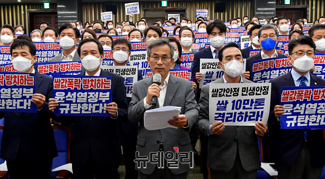 [포토] '쌀값 하락 대책 촉구' 하는 민주당