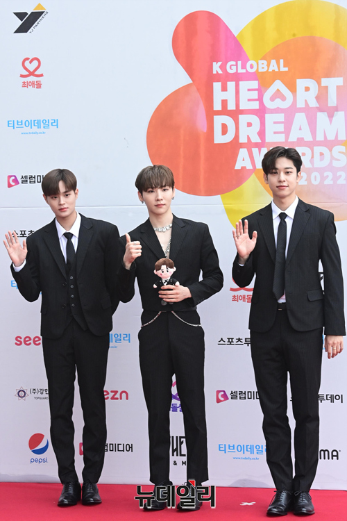아이돌그룹 에이비식스가 25일 오후 서울 송파구 잠실학생체육관에서 열린 2022 K글로벌 하트 드림 어워즈 레드카펫에서 포즈를 취하고 있다.'K글로벌 하트 드림 어워즈'는 K-팝을 세계적으로 알리며 우리나라의 위상을 드높인 아티스트와 스태프들의 노고를 기리기 위한 시상식이다.행사엔 NCT DREAM, 투모로우바이투게더, 더보이즈, 프로미스나인, VIVIZ, 헤이즈, 아이브, 르세라핌, 있지, 오마이걸, 케플러, 강다니엘, AB6IX, 유주, TNX, 알렉사, 블리처스, 이무진, 비오, 골든차일드, 드림캐쳐 등이 참석한다.