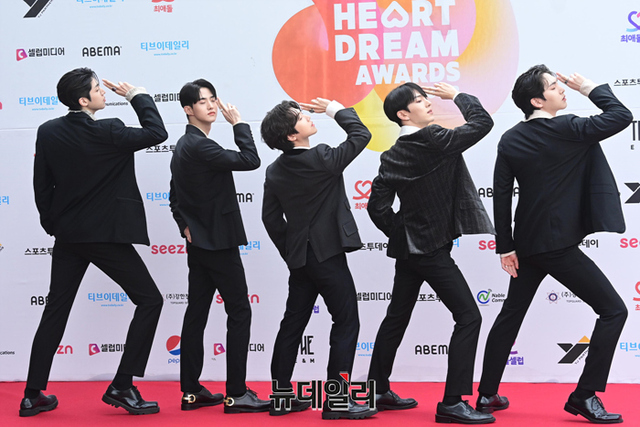 아이돌그룹 펜타곤이 25일 오후 서울 송파구 잠실학생체육관에서 열린 2022 K글로벌 하트 드림 어워즈 레드카펫에서 포즈를 취하고 있다.'K글로벌 하트 드림 어워즈'는 K-팝을 세계적으로 알리며 우리나라의 위상을 드높인 아티스트와 스태프들의 노고를 기리기 위한 시상식이다.행사엔 싸이, NCT DREAM, 투모로우바이투게더, 더보이즈, 프로미스나인, VIVIZ, 헤이즈, 아이브, 르세라핌, 있지, 오마이걸, 케플러, 강다니엘, AB6IX, 유주, TNX, 알렉사, 블리처스, 이무진, 비오, 골든차일드, 드림캐쳐 등이 참석한다.