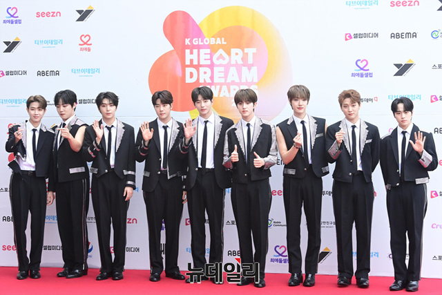 아이돌그룹 골든차일드가 25일 오후 서울 송파구 잠실학생체육관에서 열린 2022 K글로벌 하트 드림 어워즈 레드카펫에서 포즈를 취하고 있다.'K글로벌 하트 드림 어워즈'는 K-팝을 세계적으로 알리며 우리나라의 위상을 드높인 아티스트와 스태프들의 노고를 기리기 위한 시상식이다.행사엔 NCT DREAM, 투모로우바이투게더, 더보이즈, 프로미스나인, VIVIZ, 헤이즈, 아이브, 르세라핌, 있지, 오마이걸, 케플러, 강다니엘, AB6IX, 유주, TNX, 알렉사, 블리처스, 이무진, 비오, 골든차일드, 드림캐쳐 등이 참석한다.