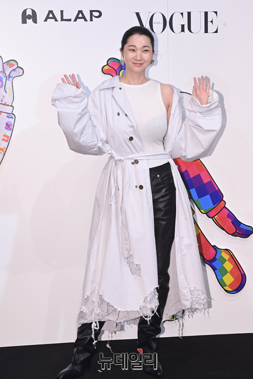 모델 장윤주가 25일 오후 서울 서초구 서울웨이브 아트센터에서 열린 NFT 캐릭터 알랍(ALAP) 런칭 행사에서 포즈를 취하고 있다.