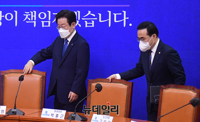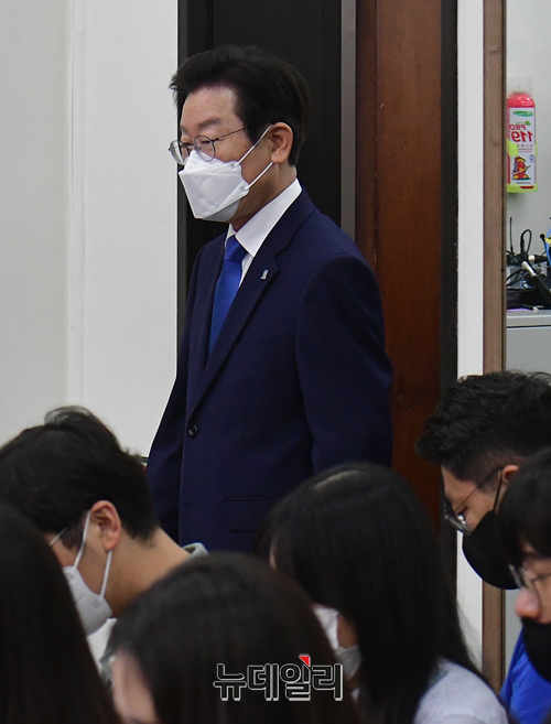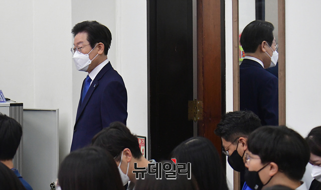 이재명 더불어민주당 신임 대표가 29일 오전 국회에서 열린 최고위원회의에 참석하기 위해 입장하고 있다.