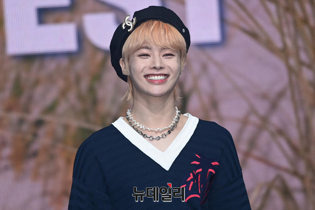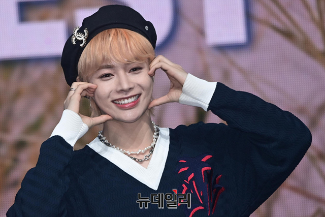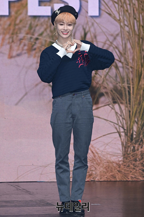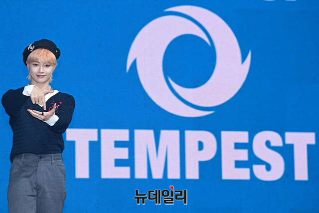 아이돌그룹 템페스트 멤버 한빈이 29일 오후 서울 광진구 예스24라이브홀에서 열린 두 번째 미니앨범 '샤이닝 업' 발매기념 쇼케이스에서 포즈를 취하고 있다.