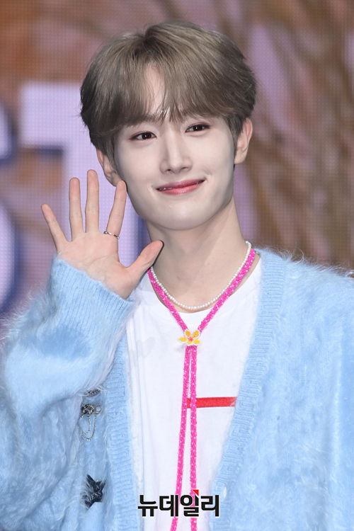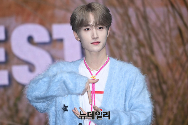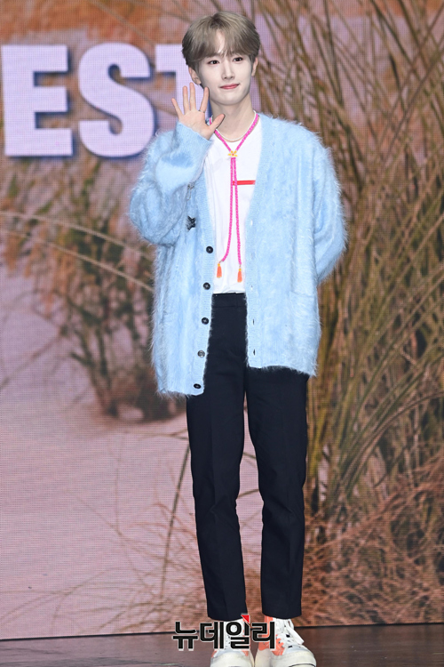 아이돌그룹 템페스트 멤버 혁이 29일 오후 서울 광진구 예스24라이브홀에서 열린 두 번째 미니앨범 '샤이닝 업' 발매기념 쇼케이스에서 포즈를 취하고 있다.