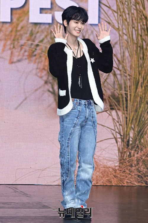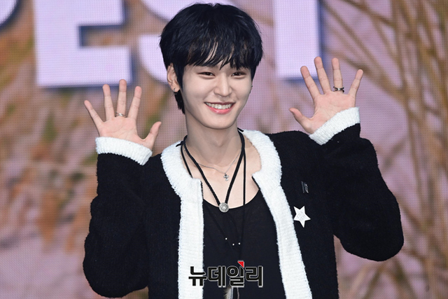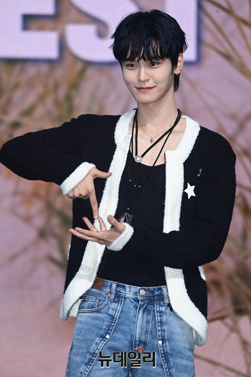 아이돌그룹 템페스트 멤버 태래가 29일 오후 서울 광진구 예스24라이브홀에서 열린 두 번째 미니앨범 '샤이닝 업' 발매기념 쇼케이스에서 포즈를 취하고 있다.