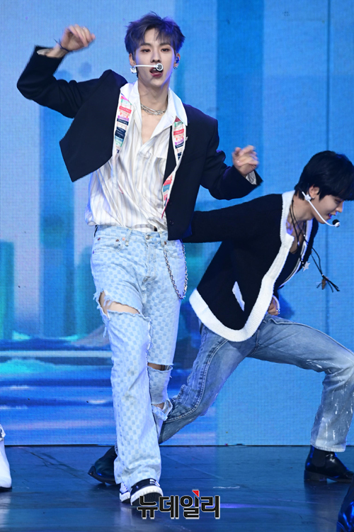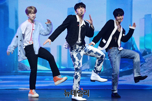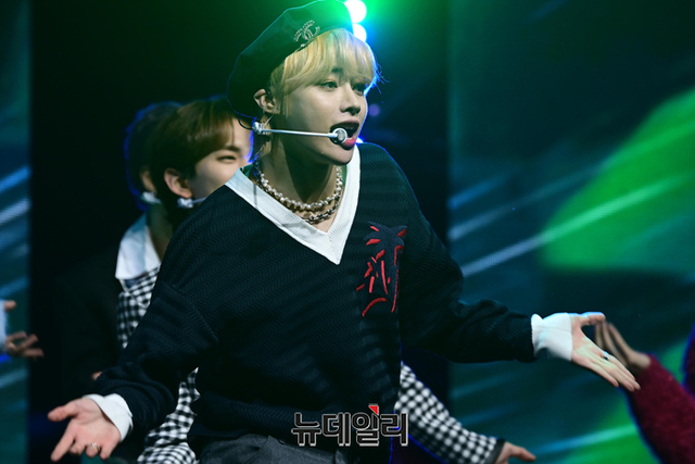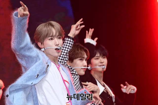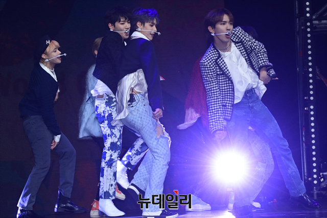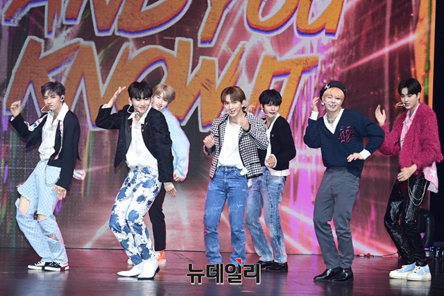 아이돌그룹 템페스트 (은찬, 화랑, 혁, 루, 한빈, 형섭, 태래)가 29일 오후 서울 광진구 예스24라이브홀에서 열린 두 번째 미니앨범 '샤이닝 업' 발매기념 쇼케이스에서 무대를 선보이고 있다.