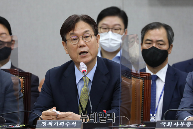 이관섭 대통령비서실 정책기획수석비서관이 30일 오전 국회에서 열린 운영위원회 전체회의에서 의원 질의에 답변하고 있다. (공동취재사진)
