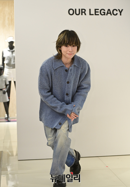위너 김진우가 31일 오후 서울 강남구 현대백화점 본점에 단독으로 오픈한 '아워레가시(OUR REGACY)' 매장을 방문해 포즈를 취하고 있다.