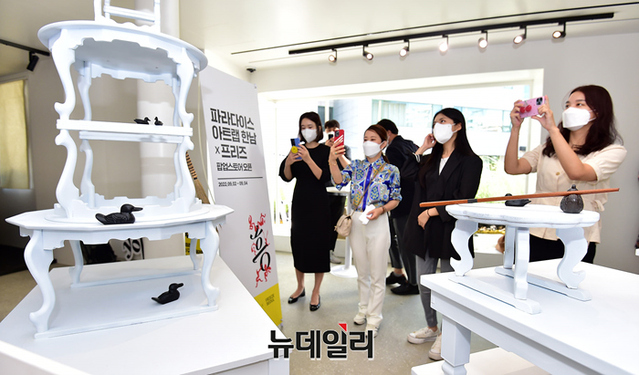 아트테인먼트 리조트 파라다이스시티가 1일 오전 서울 용산구 파라다이스 아트랩 한남에서 '파라다이스 아트랩 한남X프리즈' 전시와 함께 팝업스토어 공개했다.파라다이스시티는 아시아 최초로 서울에서 개최되는 세계적 아트페어 '프리즈 서울' 호텔 파트너로서 프리즈 서울 기간에 맞춰 한국 신진 작가들에게 전시 기회를 제공하고, 예술에 대한 관심을 고조시키고자 이번 행사를 마련했다.한국 고유 정서인 ‘흥(興)’을 주제로 미디어아트, 예술작품 전시를 비롯해 파라다이스 와인 시음 등이 마련돼 예술적 감성을 만끽할 수 있는 공간으로 구성됐다. 9월 2일부터 4일까지 오픈.