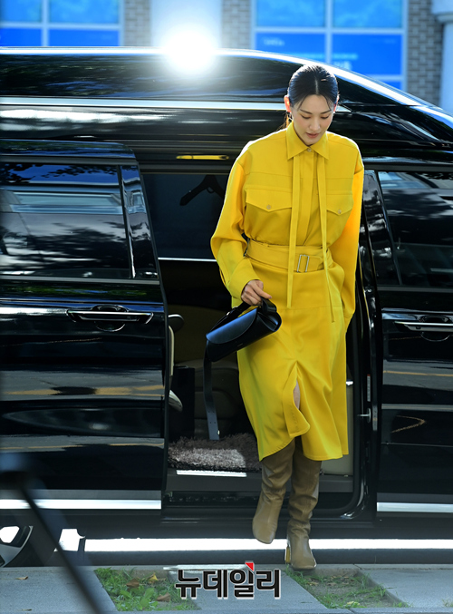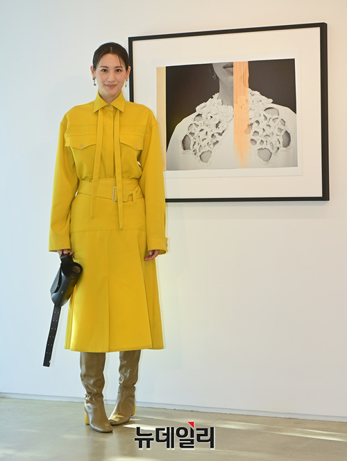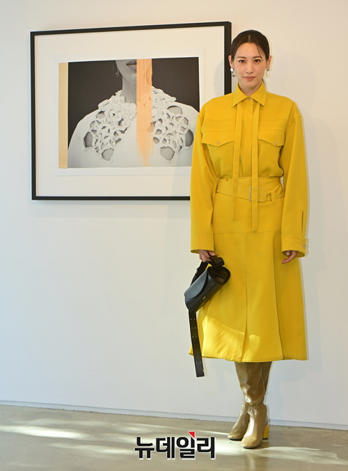 배우 수현이 2일 오후 서울 종로구의 한 갤러리에서 열린 패션브랜드 질 샌더 캠페인 쇼케이스에 참석해 포즈를 취하고 있다. 이번 전시는 크리스 로즈가 촬영하고, 카트린 드 블라워가 재구성한 질 샌더 2002 프리폴 컬렉션을 담은 캠페인 쇼케이스다.