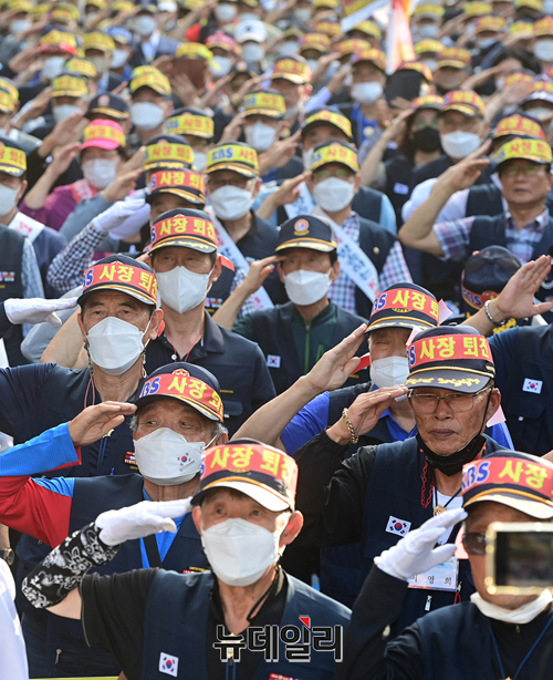 [포토] 여의도에 모인 월남전참전자회 "김의철 KBS 사장 물러나라"